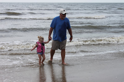 This past weekend we went to Galveston with John's family and had such a great time. This was Madison's first trip to the beach and loved it. I was shocked by how much she even liked being in the salt water. His parents rented an EZGo which was such a hit. We rode up and down the beach looking at the different beach houses, collected shells and just enjoyed riding. It was super fun!